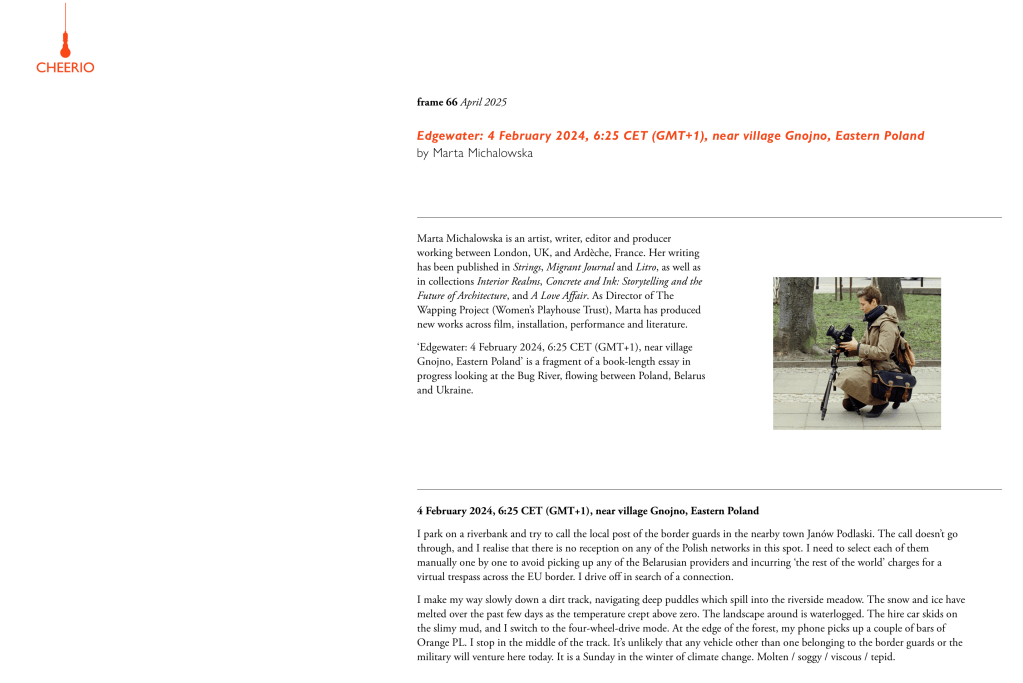 Extract from a book-length essay in progress Edgewater published by Cheerio Publishing as Frame 66